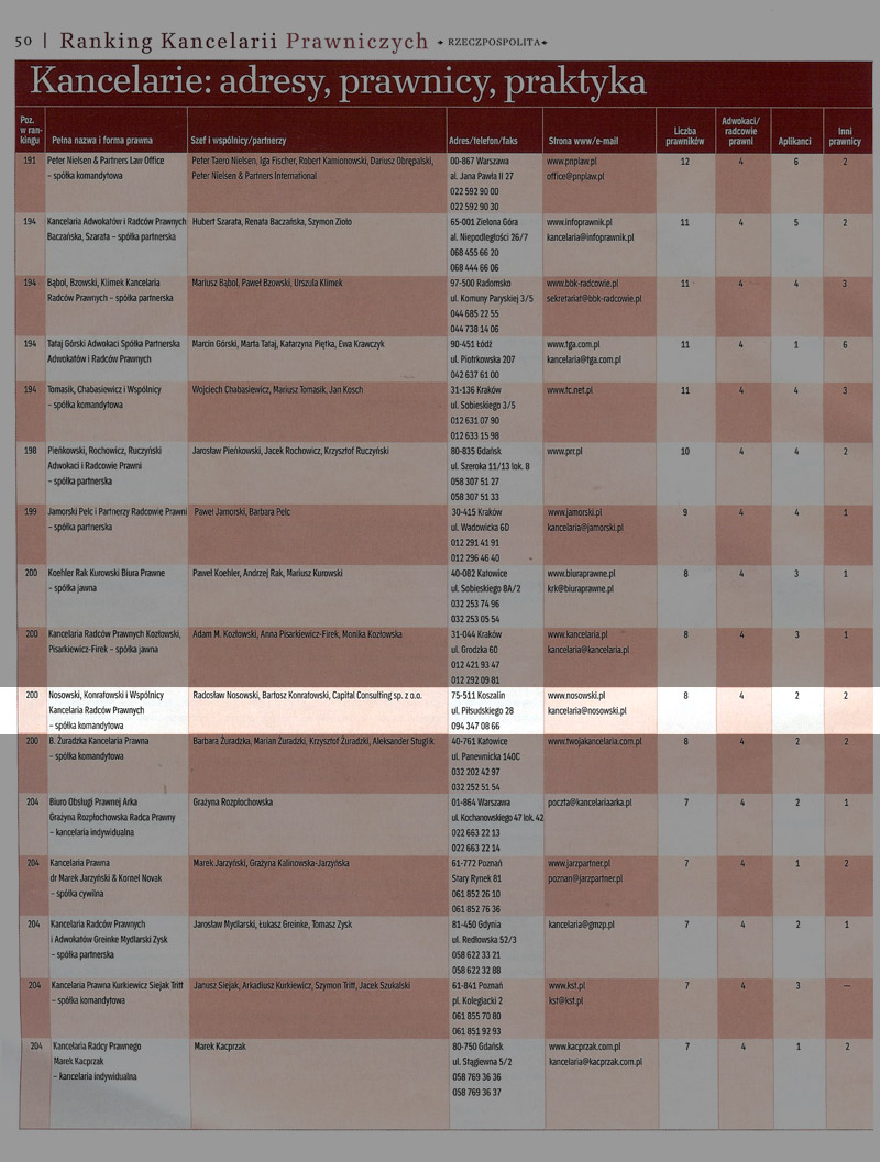 We are delighted to inform, that our Office has been recognized and placed in the annual ranking of the best Polish Law Firms 2009, prepared and published by “The Republic” daily.
